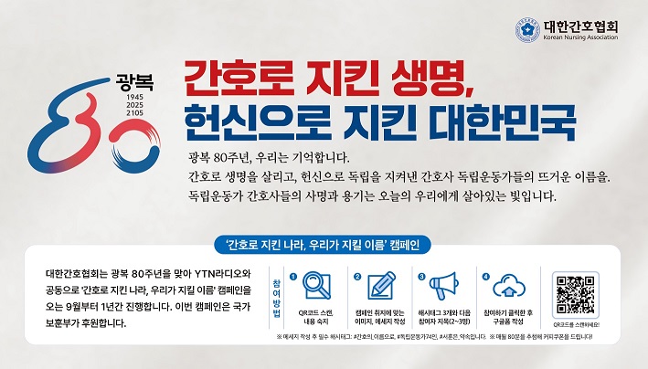 °£È£Çùȸ´Â µ¶¸³¿îµ¿¿¡ Çå½ÅÇÑ °£È£»ç 74ÀÎÀÇ È°µ¿À» ¾Ë¸®±â À§ÇØ À̹ø Ä·ÆäÀÎÀ» ±âȹÇß´Ù. ÄÜÅÙÃ÷´Â ³»³â 8¿ù±îÁö YTN¶óµð¿À¸¦ ÅëÇØ ¸ÅÀÏ ¼¼ Â÷·Ê ¹æ¼ÛµÈ´Ù.
